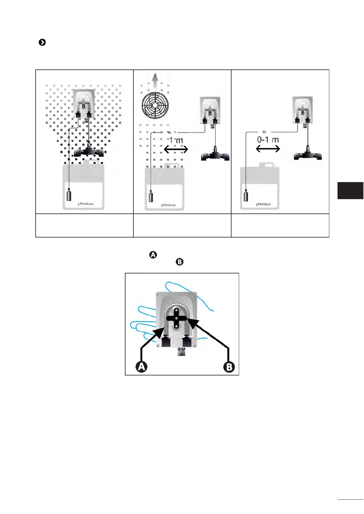 • Per evitare che la pompa funzioni a vuoto, il livello del fusto di pH-Minus (acido) deve essere controllato ogni