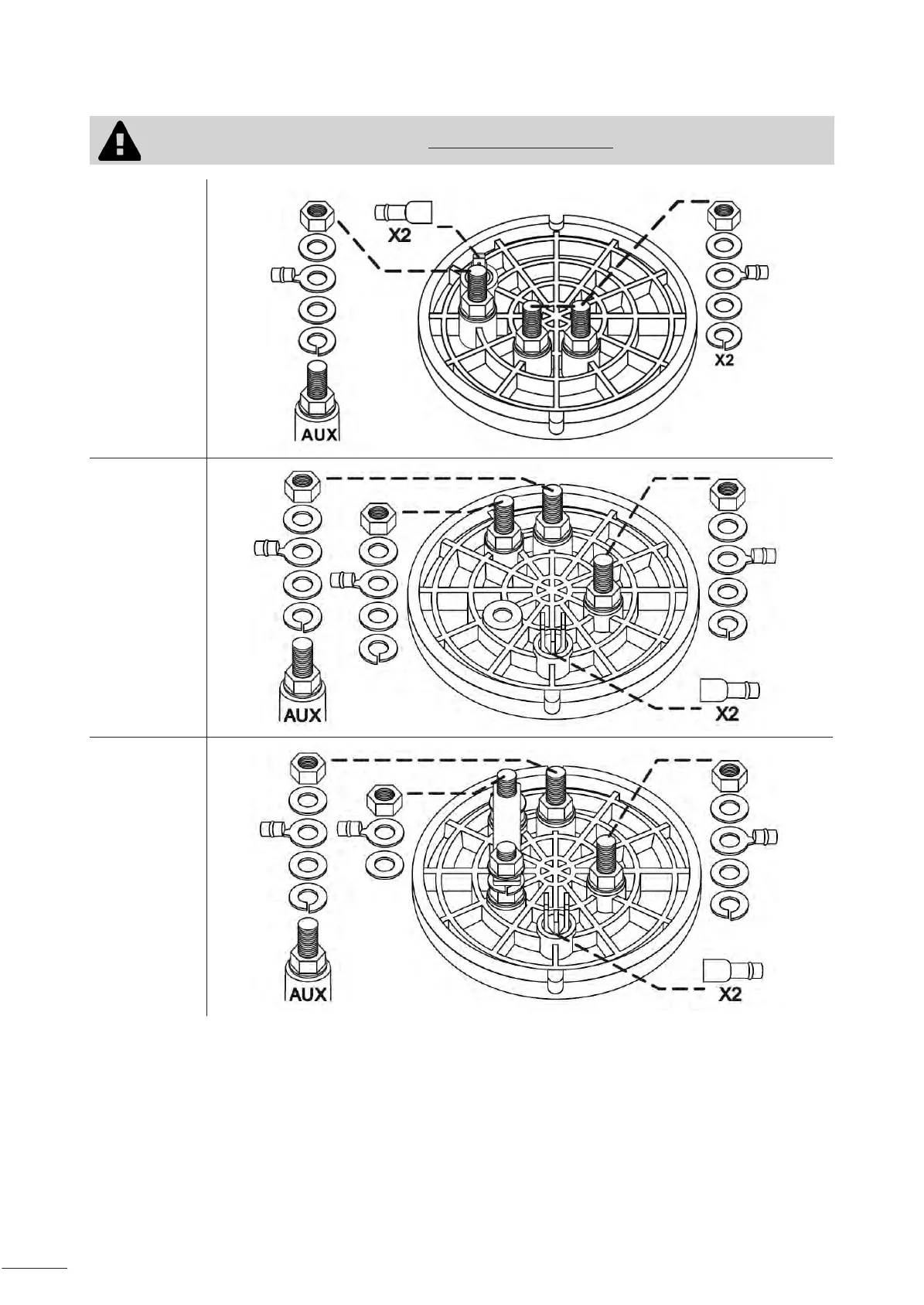 • Anslut kontaktdonen genom a i tur och ordning lägga in kabelskor, brickor och murar (se tabell nedan).