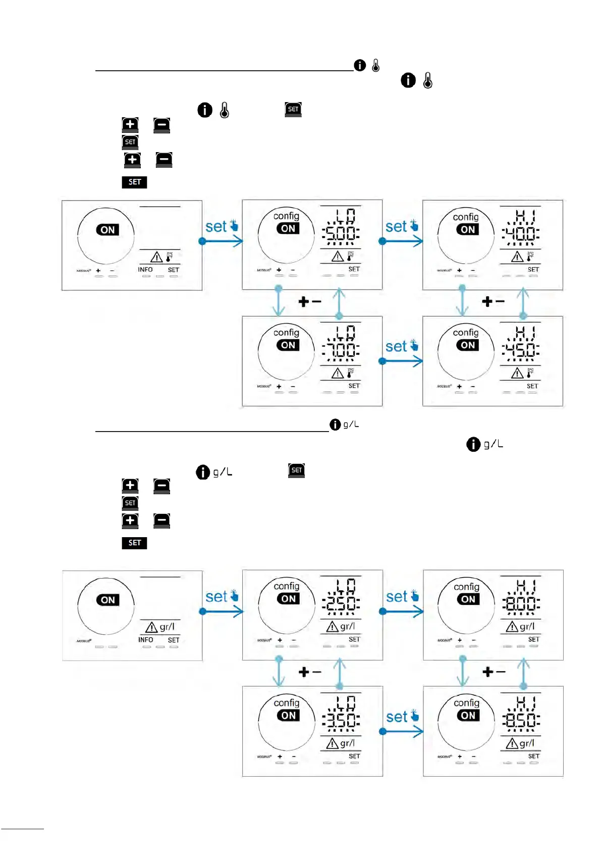 • Depuis le mode Conguraon/ , appuyer sur : la valeur minimale (indiquée par « LO ») clignote.