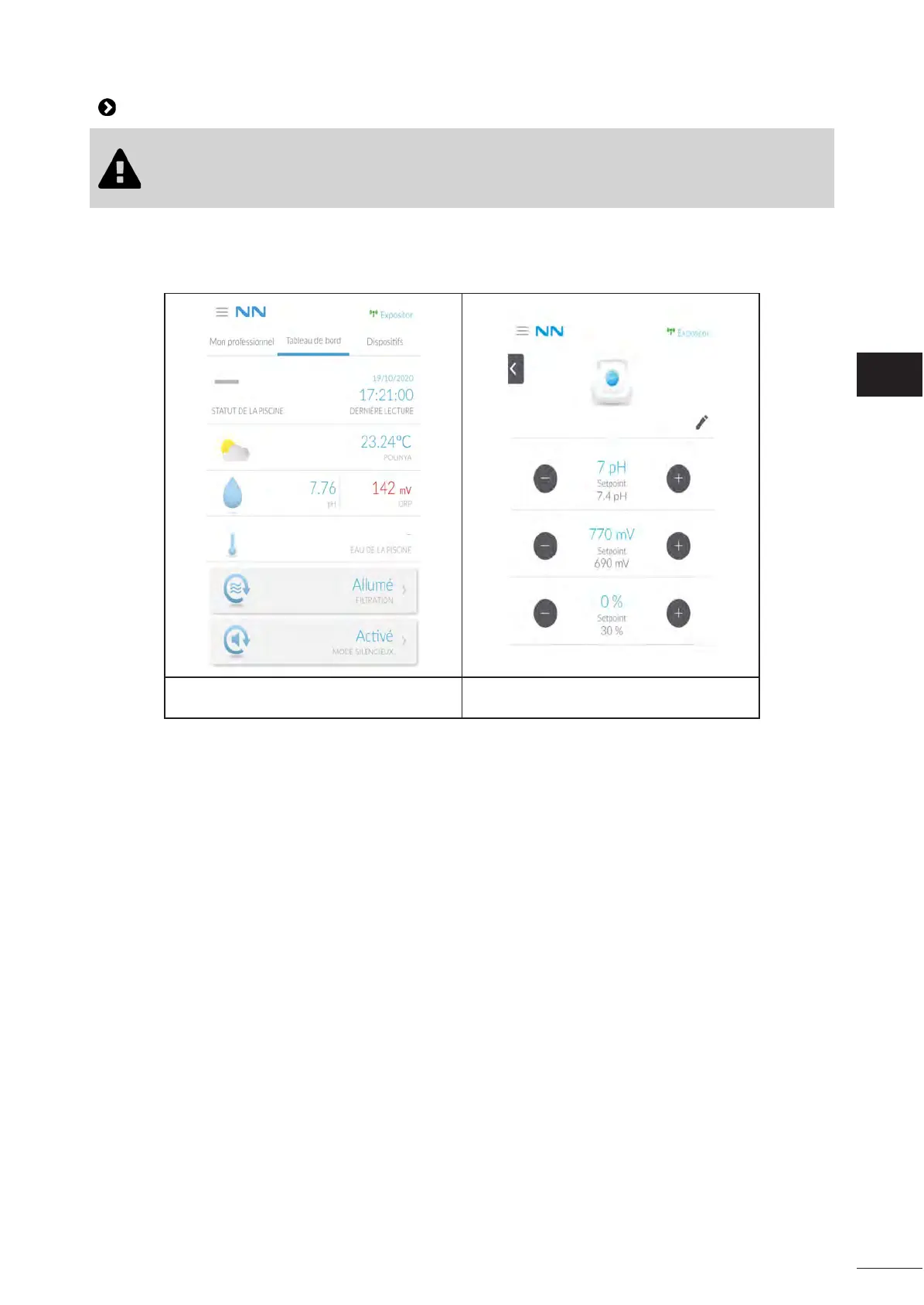 • Accéder aux paramètres de votre piscine ou régler les points de consigne à distance.