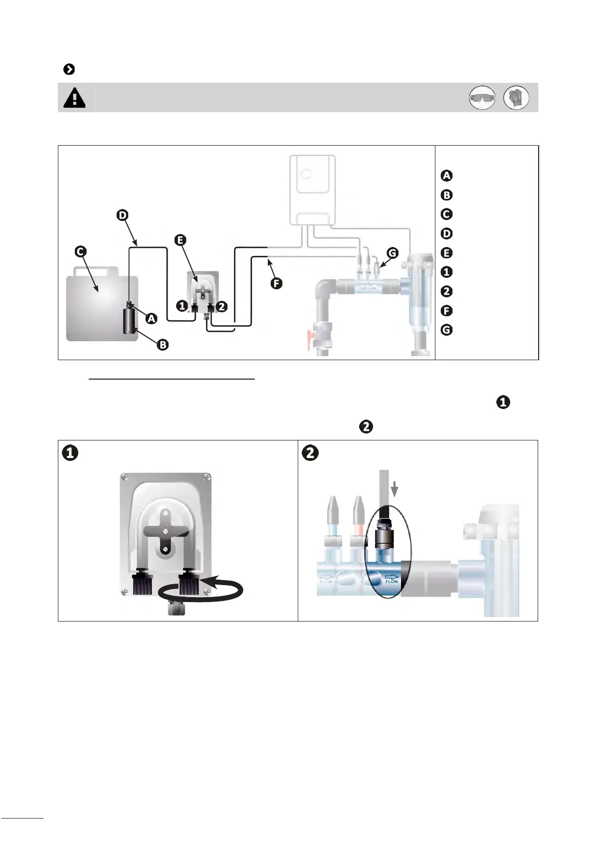 • Unscrew the connector cap and aach the hose to the connector at the outlet of the pH pump, see gure .