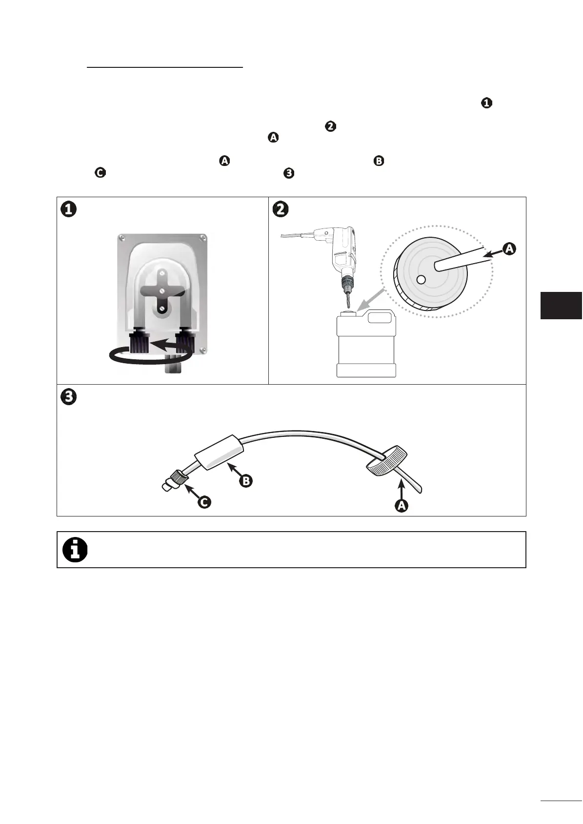 • Unscrew the connector cap and aach the hose to the connector at the inlet of the pH pump, see gure . Screw