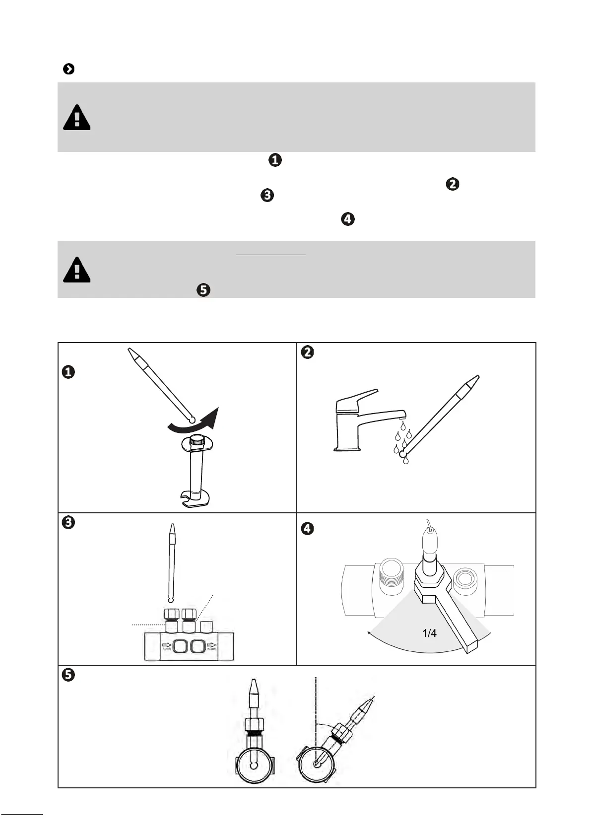 • Das Ende der Sonde unter Leitungswasser spülen und das überschüssige Wasser abschüeln ( ).