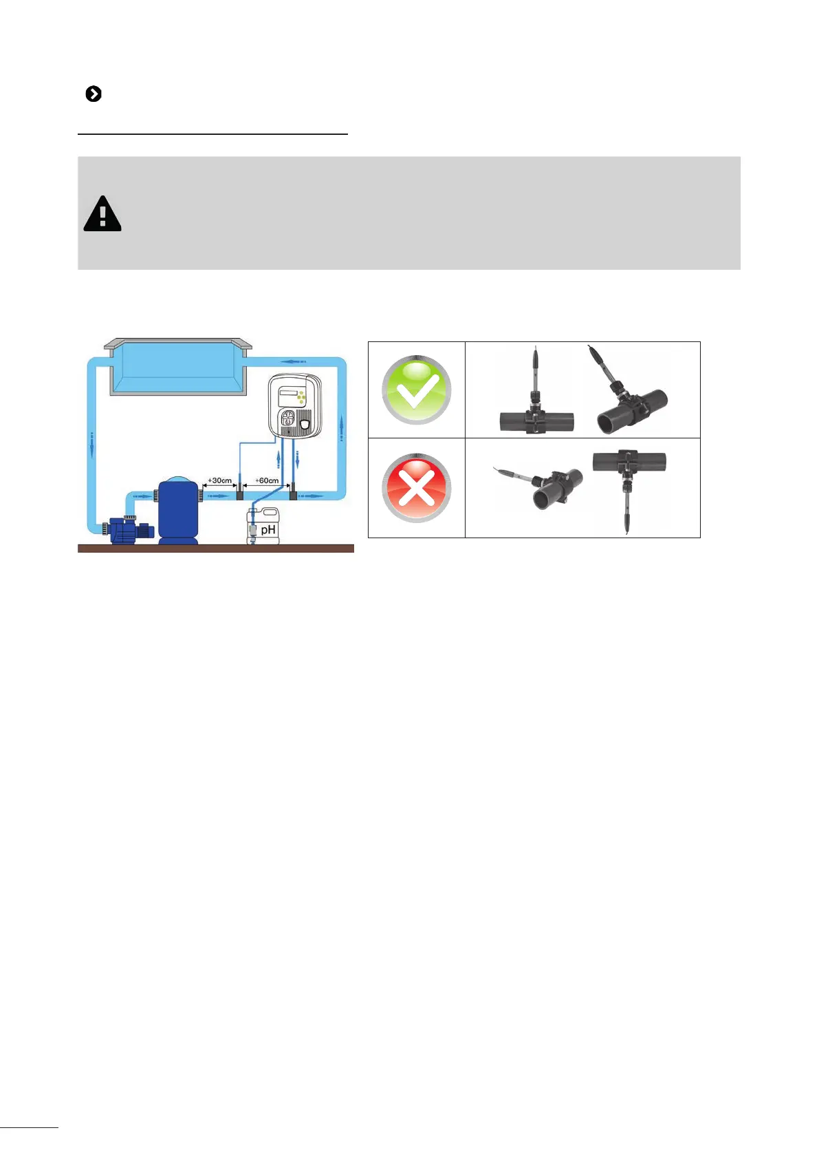 • The pH sensor must be placed a� er the lter and before the hea ng system,
