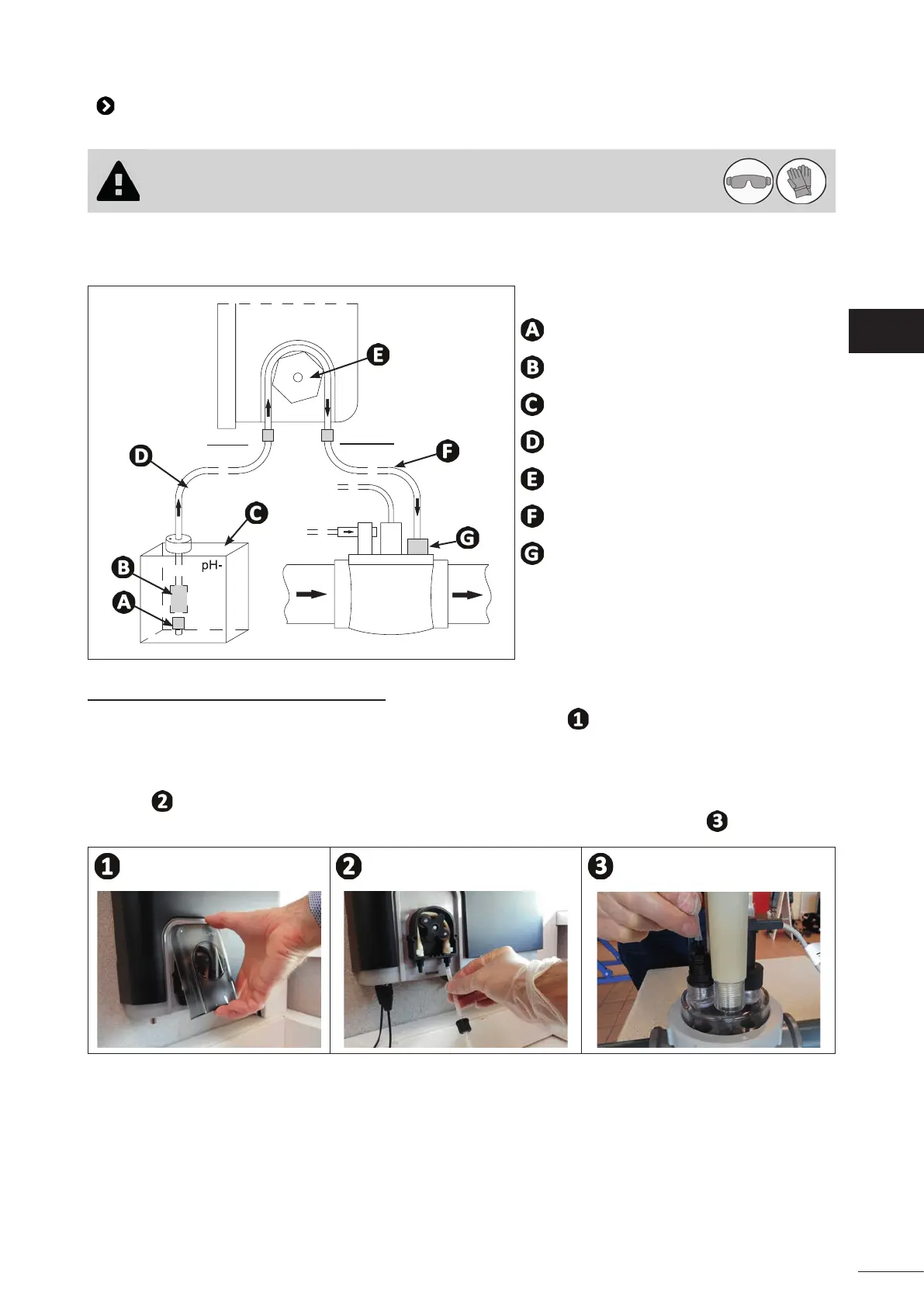 The peristal c pump rotates in the clockwise direc on. The acid (pH minus) is therefore fed into the le side of the pump