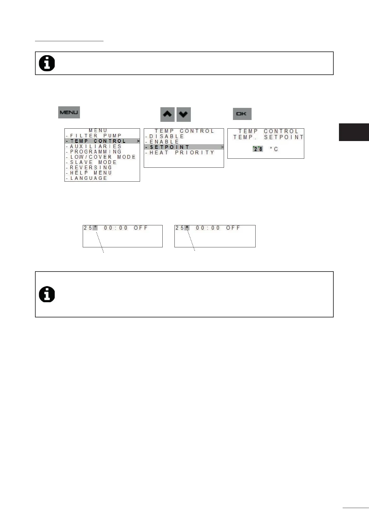 Con gure the desired water temperature setpoint. The default value is 28°C. This value can be set between 15 and 32°C.