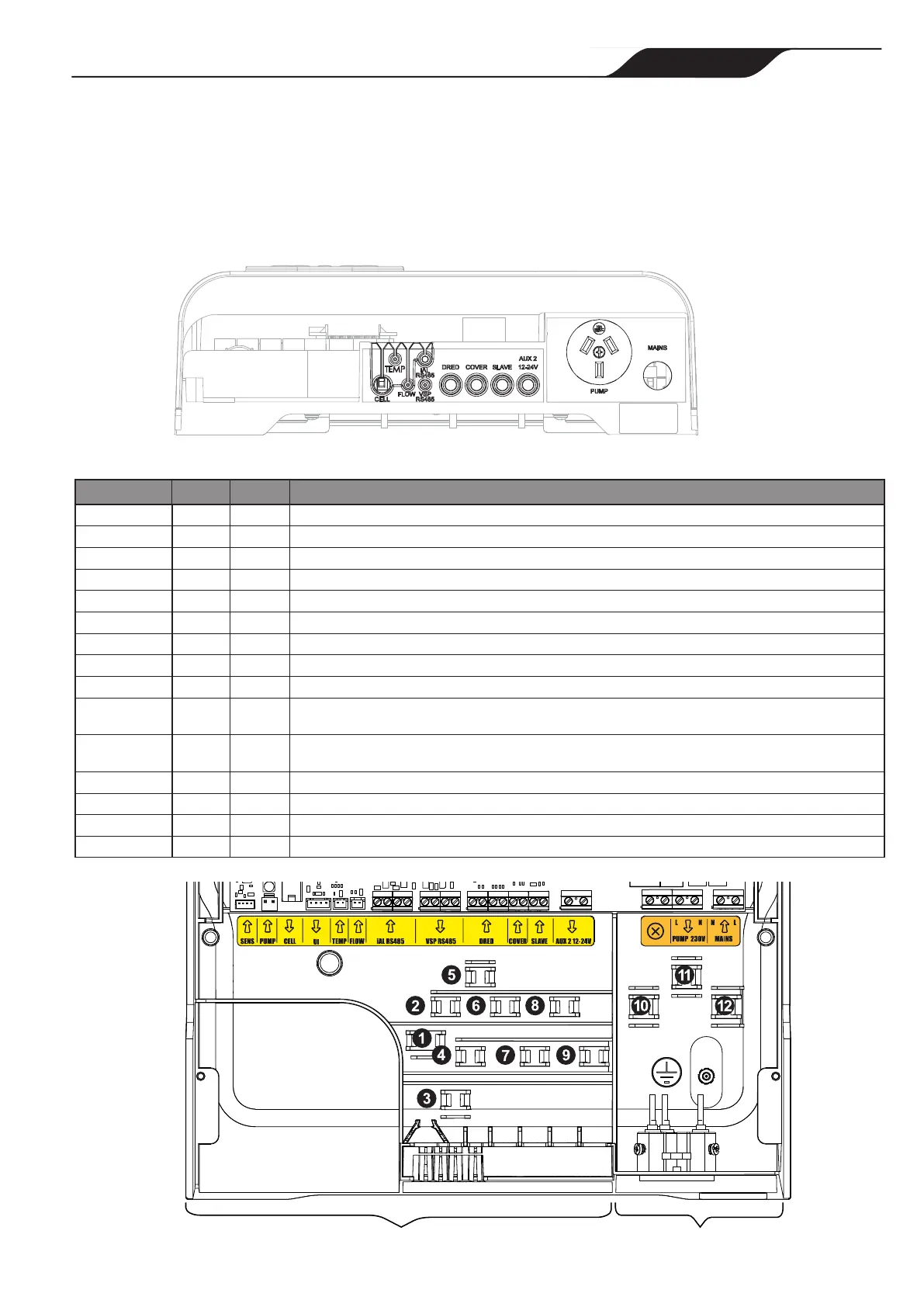 PUMP 230V Output 11 230 V Power supply for the filtration pump Maximum 8A