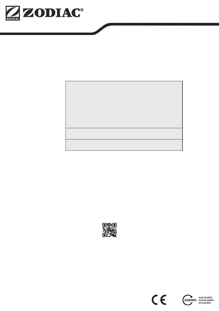 Zodiac Pool Care Europe - Bd de la Romanerie - BP 90023 - 49180 St Barthélémy d’Anjou cedex - S.A.S.U. au capital de 1 267 140 € / SIREN 395 068 679 / RCS PARIS