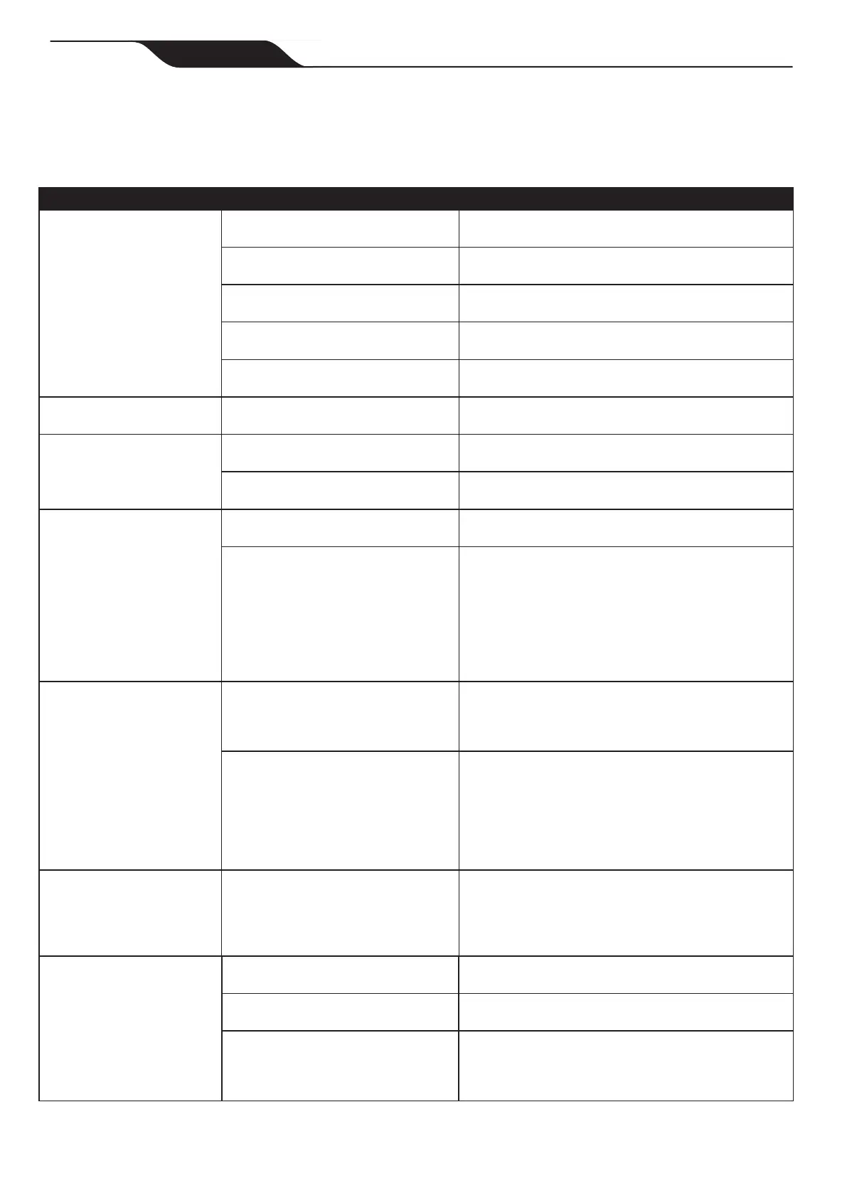 The following table lists some of the common symptoms, causes, and solutions for correcting cleaner operation
