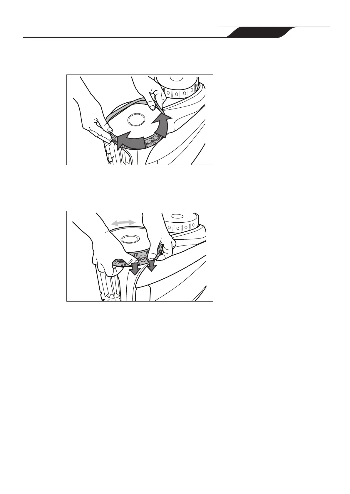 Push and position the rib of the inner side of the tyre in the groove of the wheel