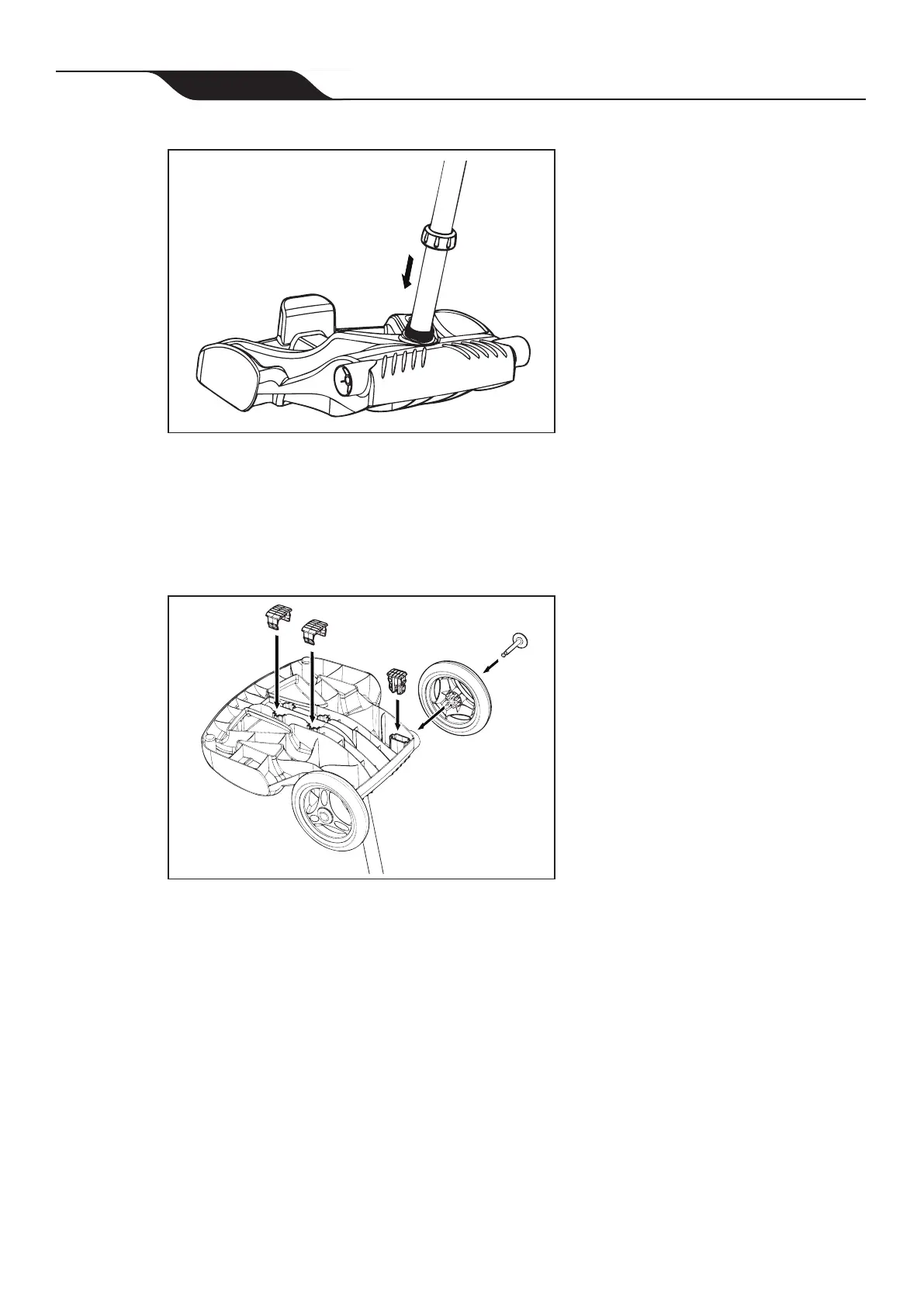 Snap locking clip into place to secure wheel. Repeat to attach both wheels
