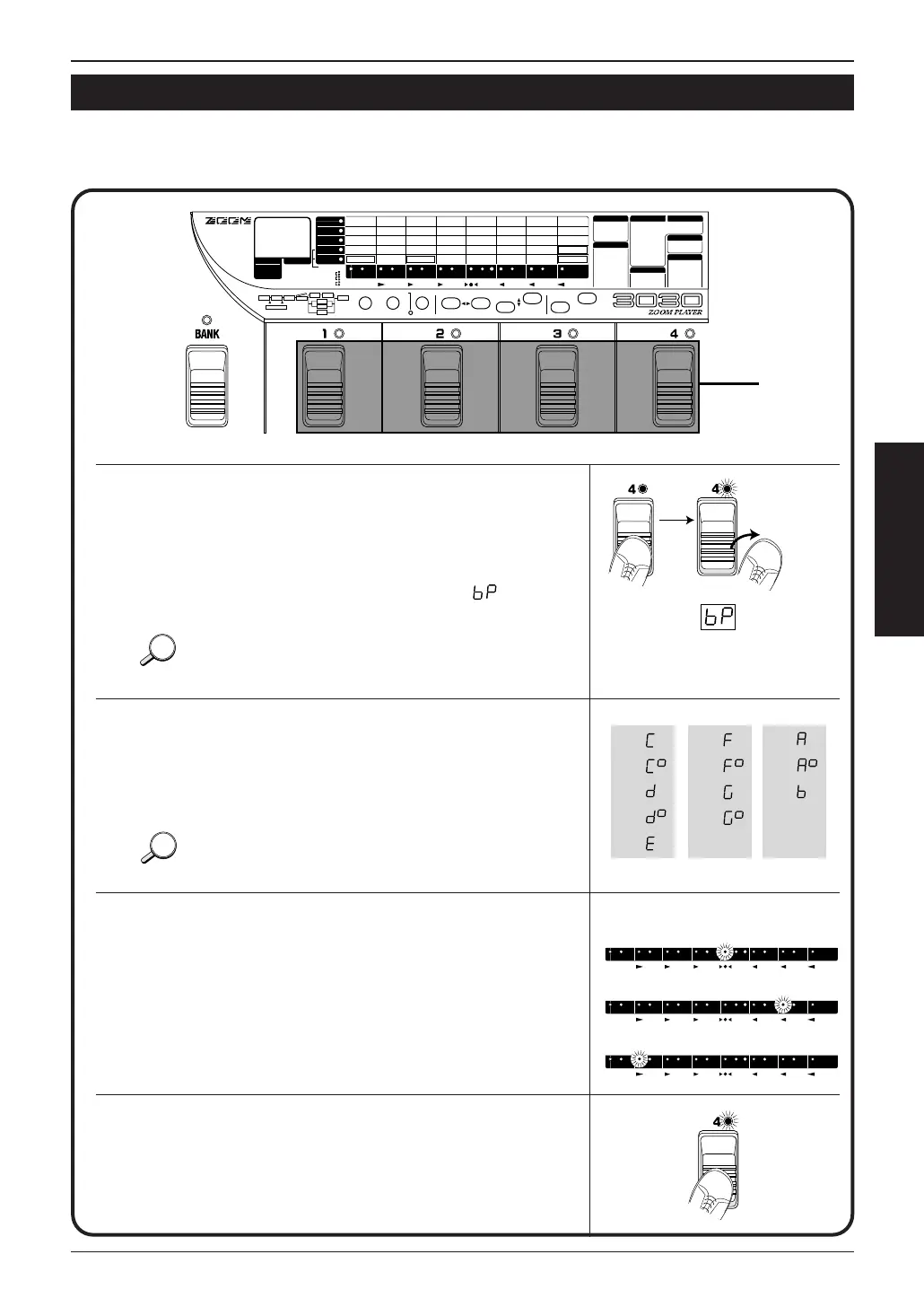 currently lit in the display for Foot Switches 1 – 4, and