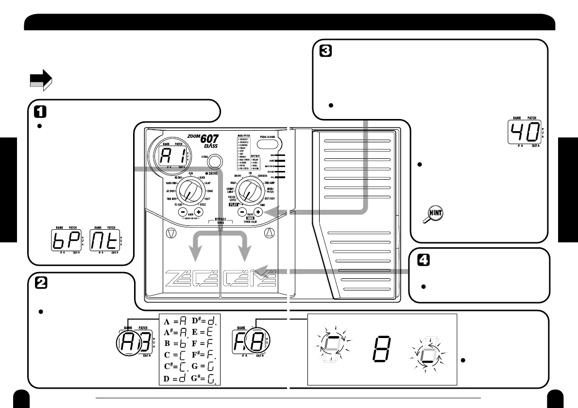 The 607 incorporates an auto-chromatic tuner for guitars. To use the