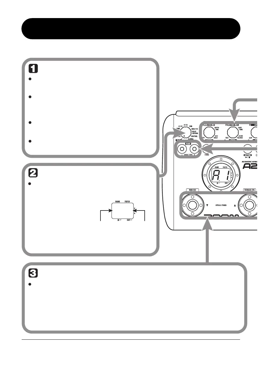 楽器を演奏しながらパッチを切り替えて、さまざまな効果を試してみましょう。