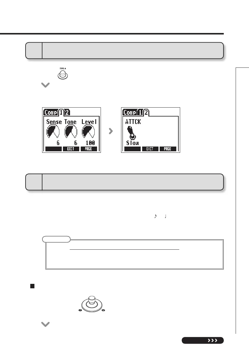 • Bydefault,when pressed and held, the footswitch is set to activate the Tuner. To tap the tempo with the