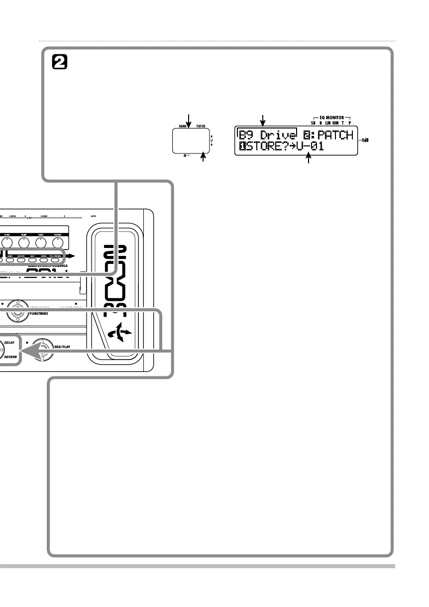 PATCH/BANK [▼]/[▲]フットスイッチを踏んでバンクを切り替えてから、フ