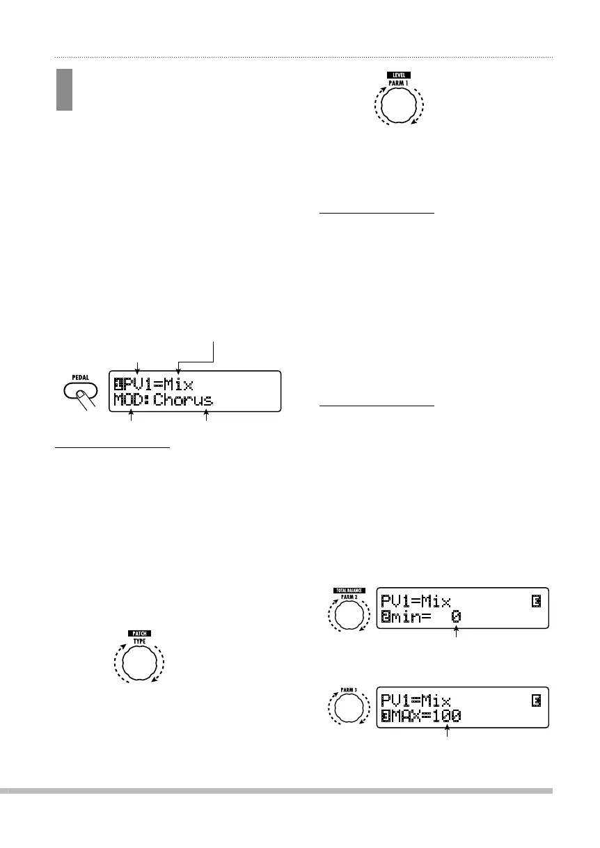 パラメーターノブ 1 を回すのにしたがって、エフ