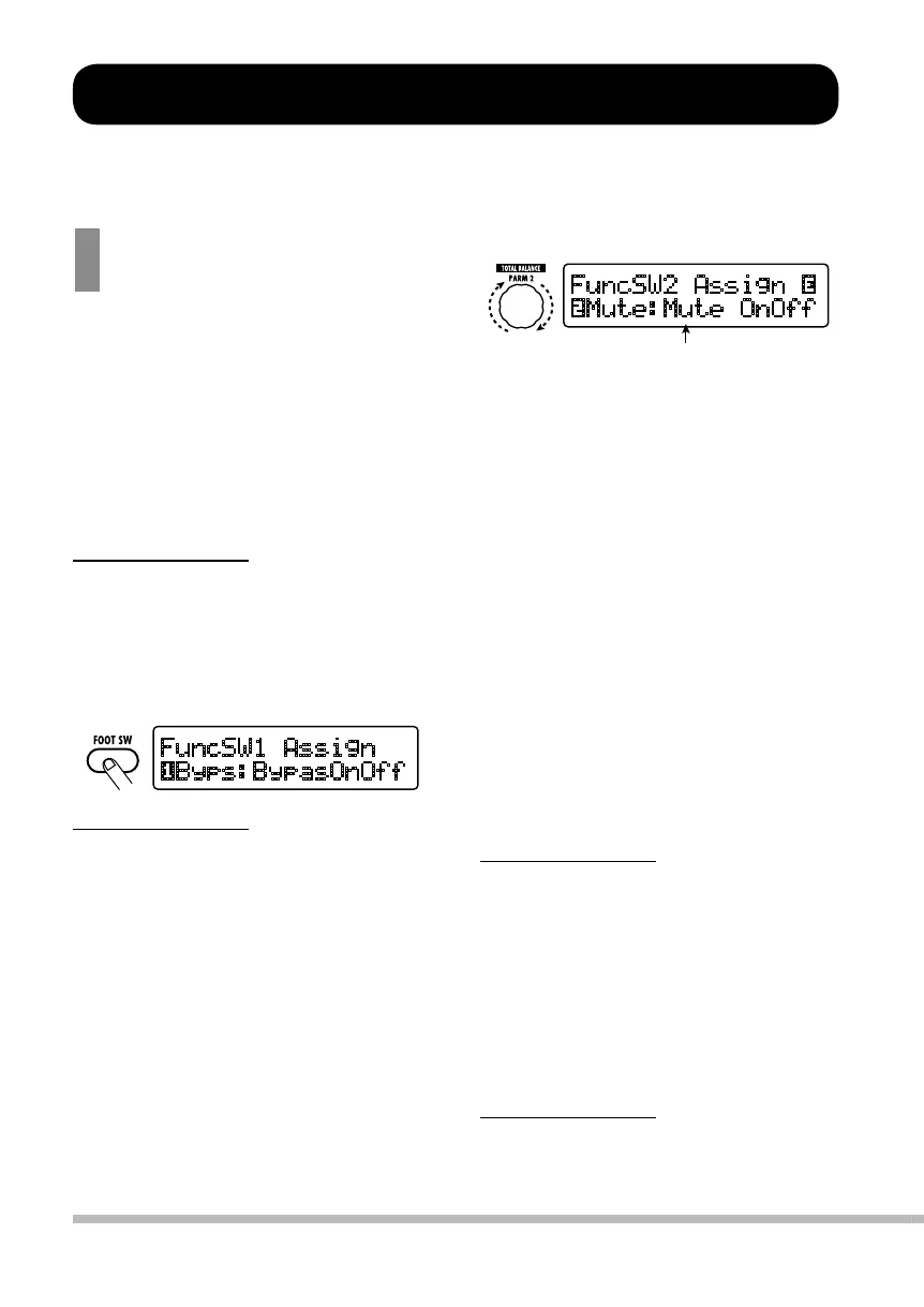 ここでは、ファンクションフットスイッチ 1 〜 3 に独自の機能を割り当てる方法や、マニュアルモードでフ