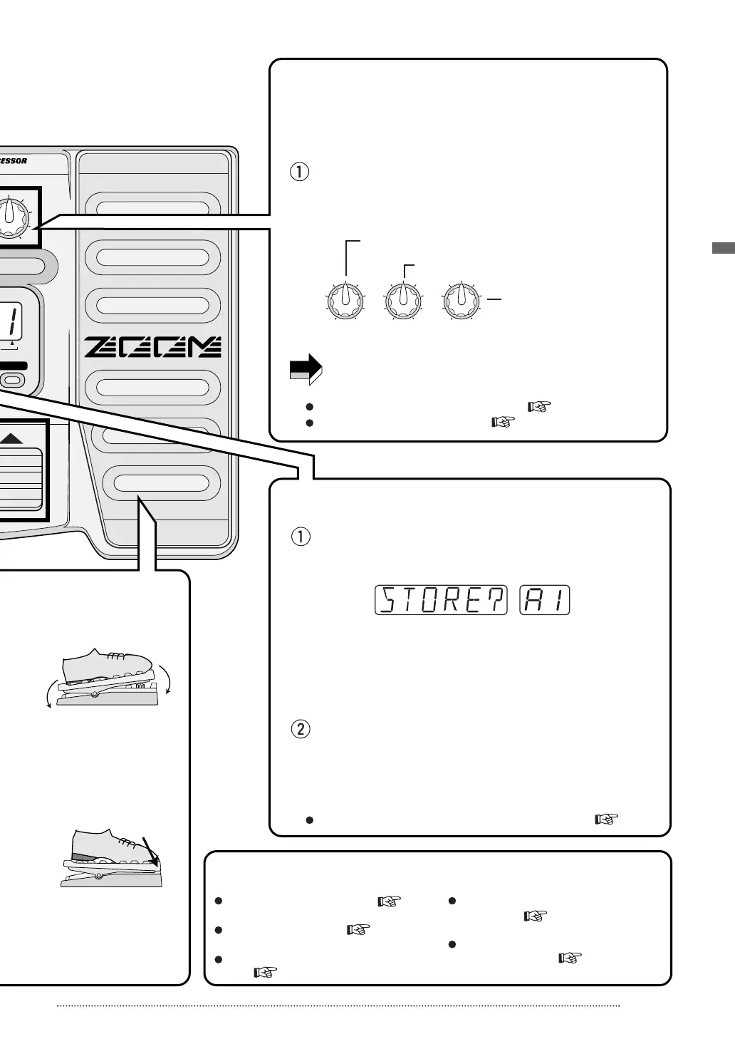 TYPE(BANK)▼/▲キーと▼/▲フットスイッチを使って、保