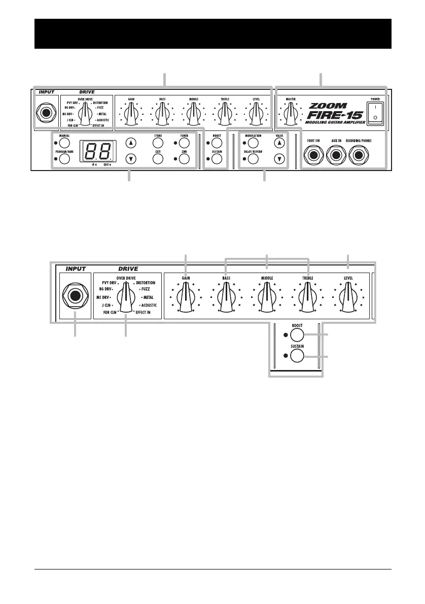 (4) [BASS]/[MIDDLE]/[TREBLE] knobs