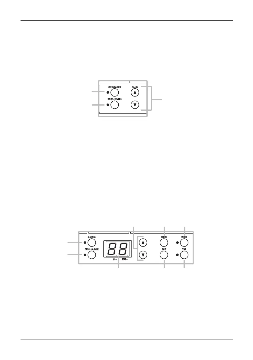 This section controls the built-in digital effects. The FIRE-15 provides modulation effects and