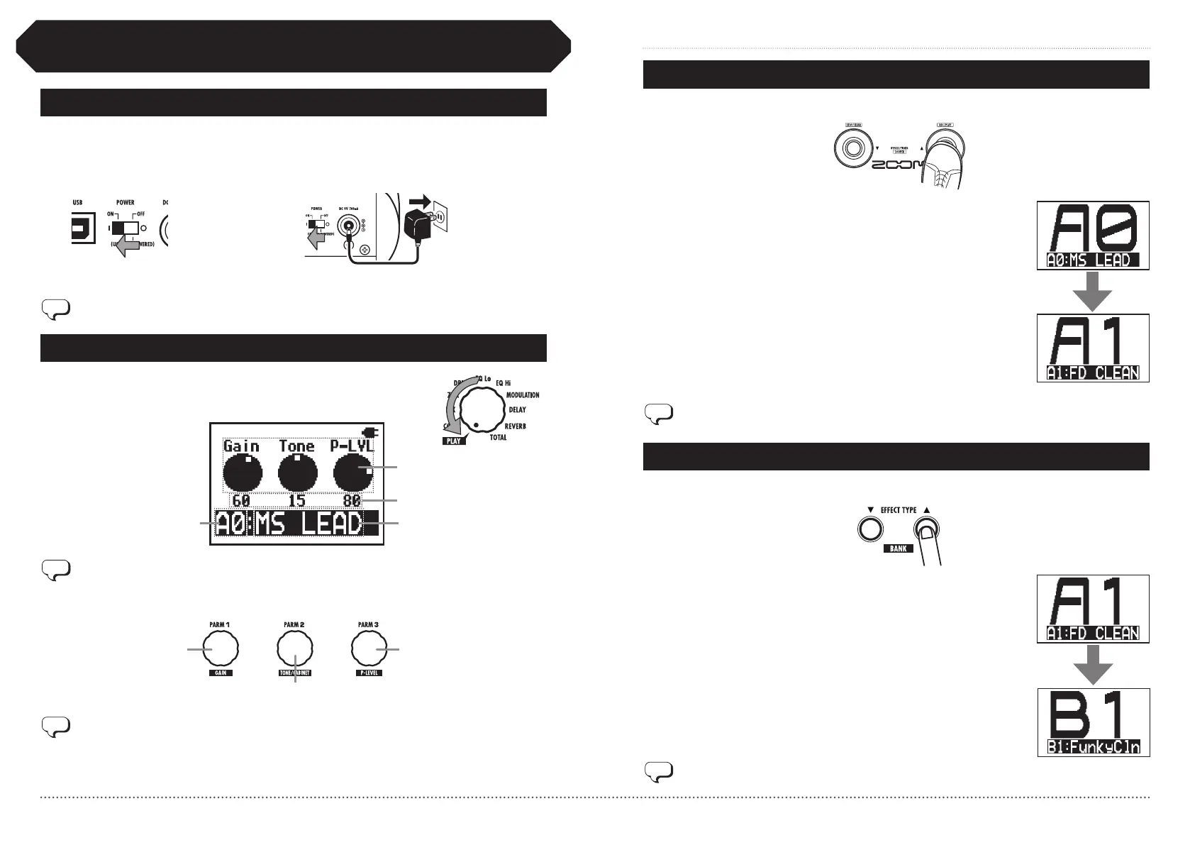 外付けのフットスイッチ(FS01)を使ってバンクを切り替えることも可能です(→ P26)。
