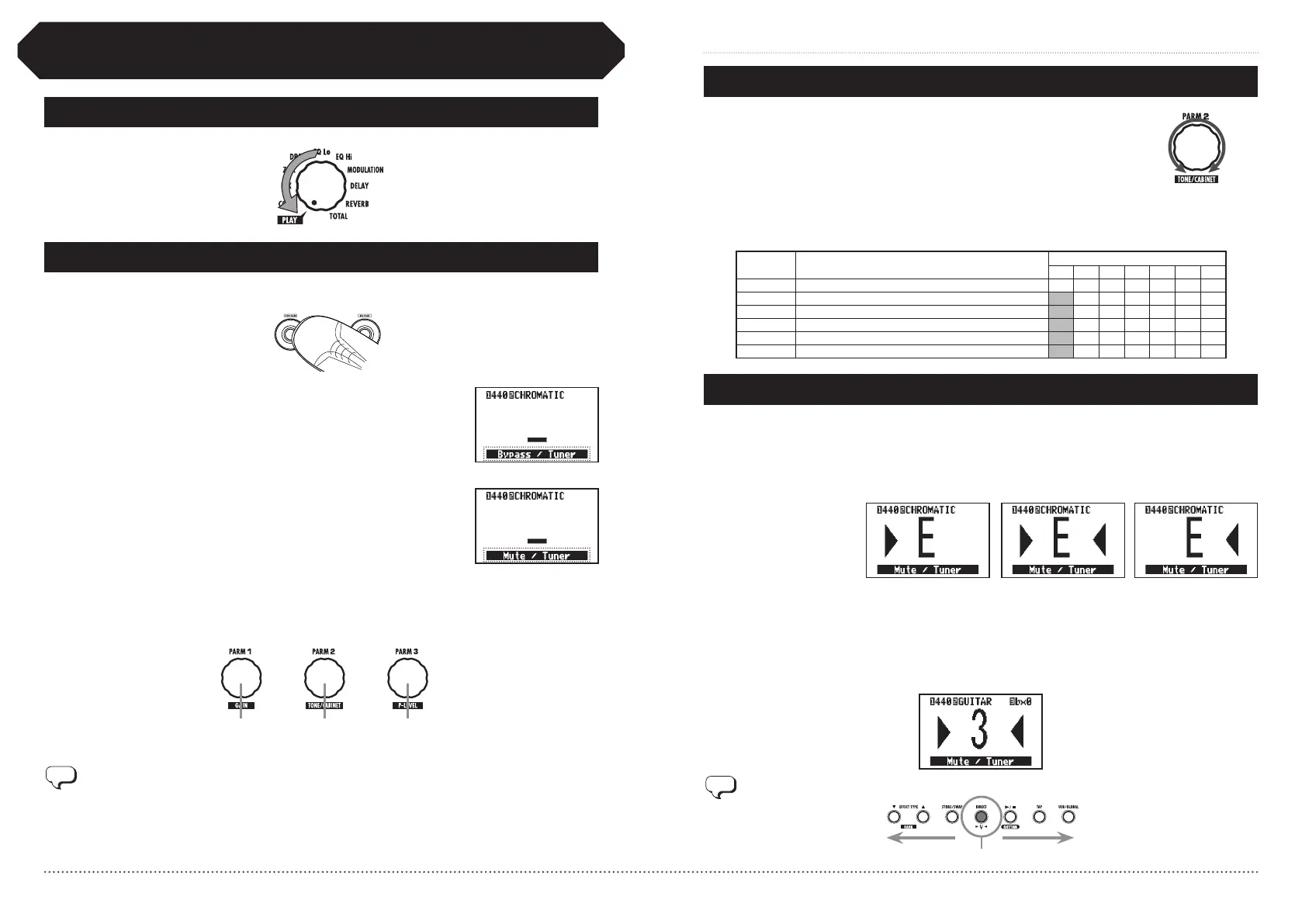 “Bypass/Tuner”と表示されたら 1秒以内に放してください。