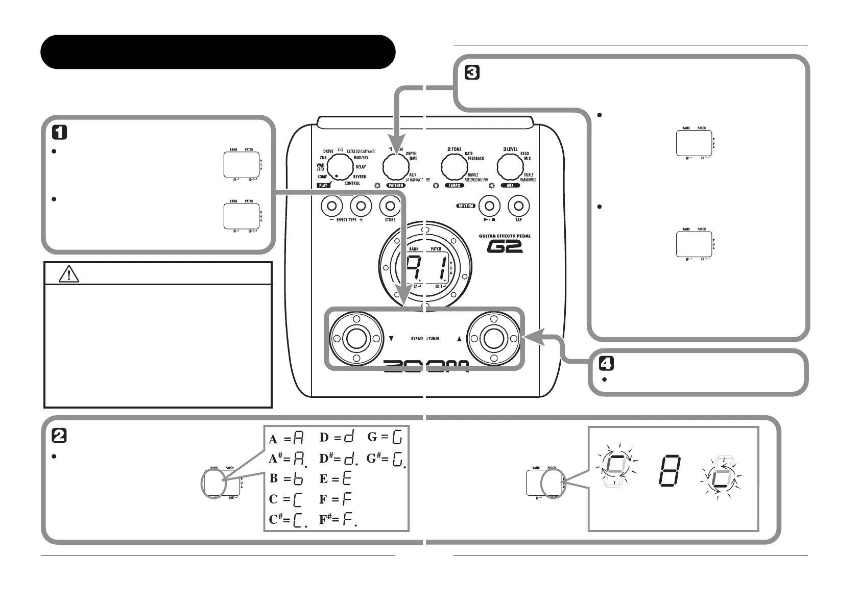 The G2 incorporates an auto-chromatic tuner. To use the tuner function, the built-in effects must be