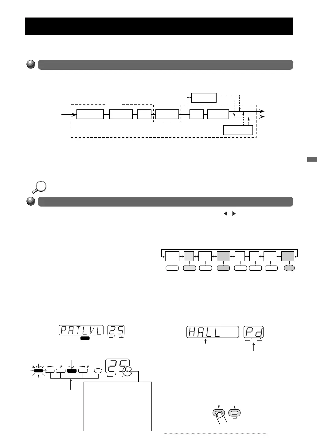 comprises effect types such as HALL, ROOM, and PP-DLY (ping-pong delay).