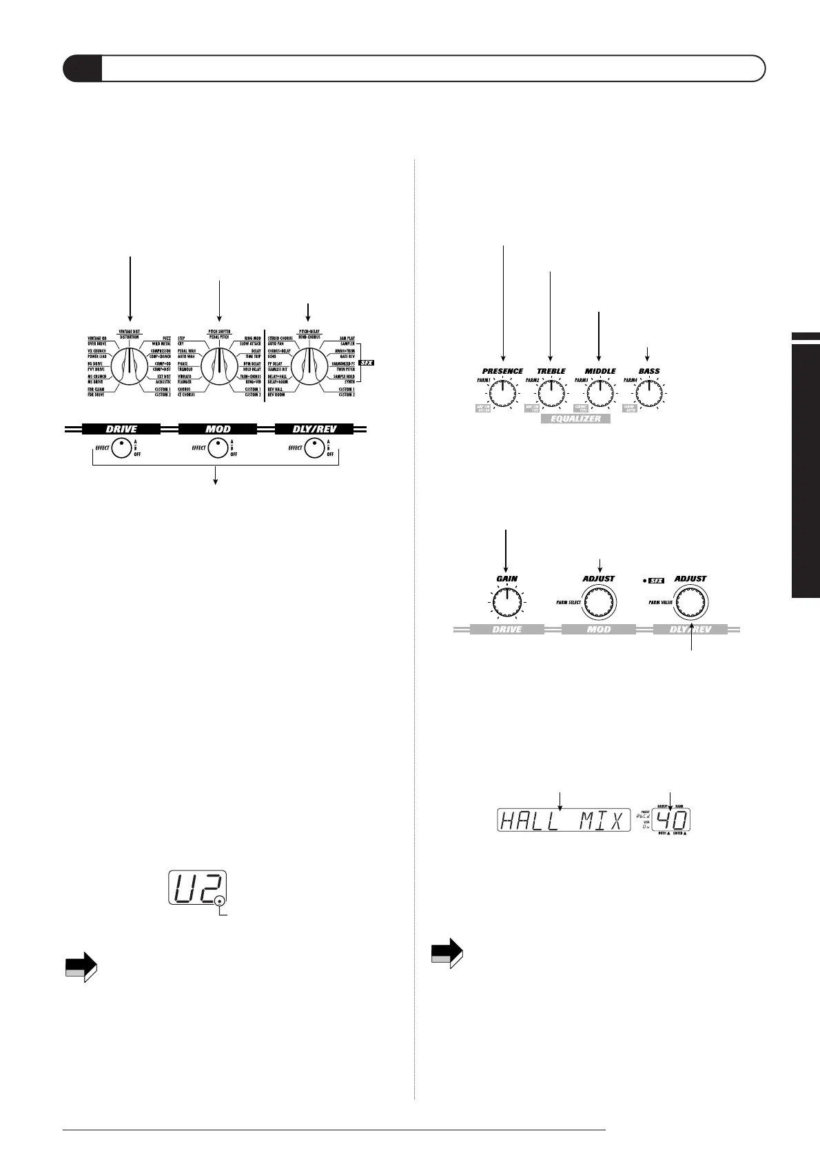 To edit patches of the GFX-8, the user normally will activate the edit mode, select the desired parameter, and change the setting.