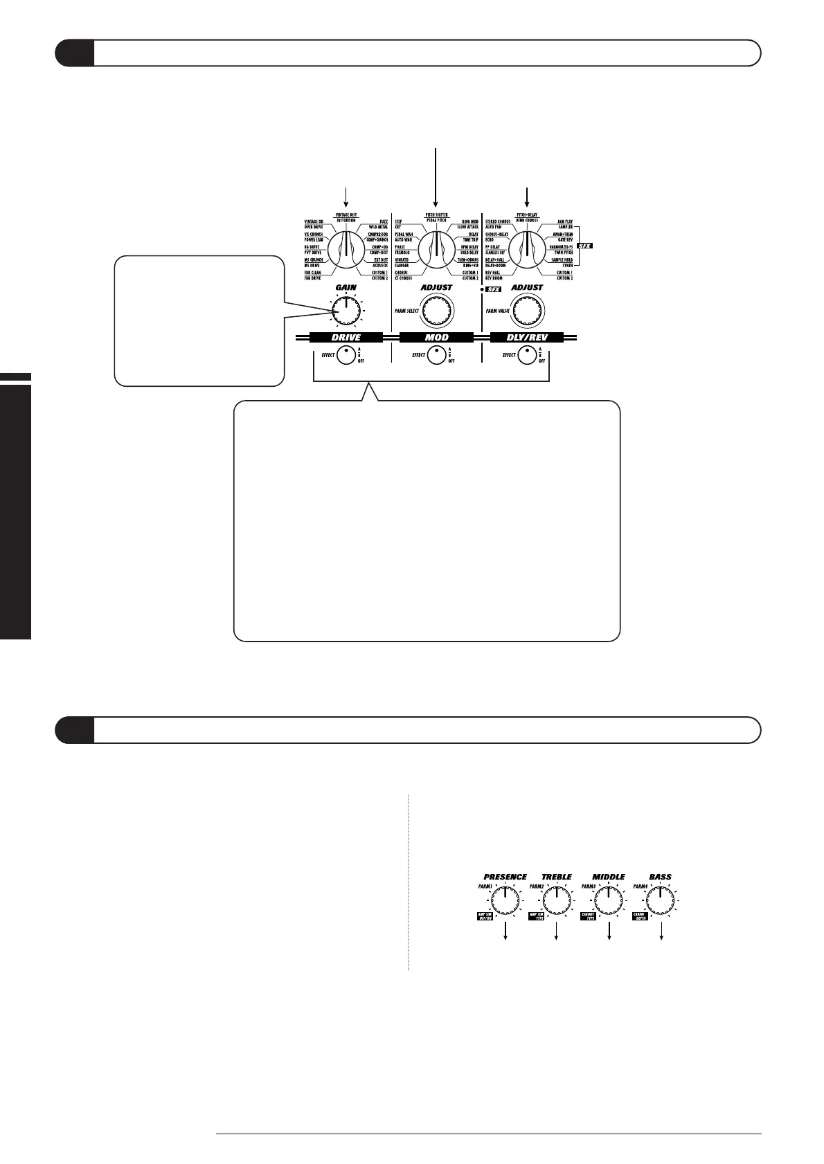 Use the DRIVE, MOD, DLY/REV, ZNR/EQ EDIT, or