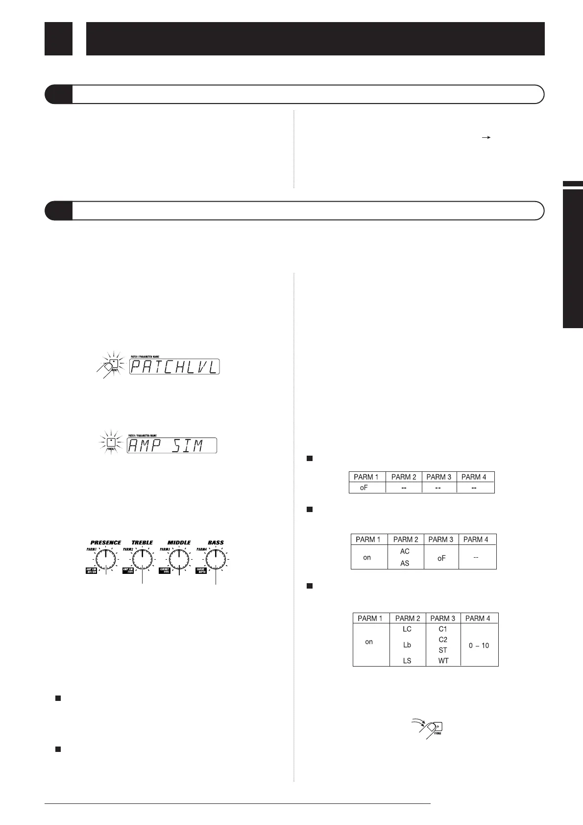 Use the PARM knobs 1 - 4 to select the amp simulator