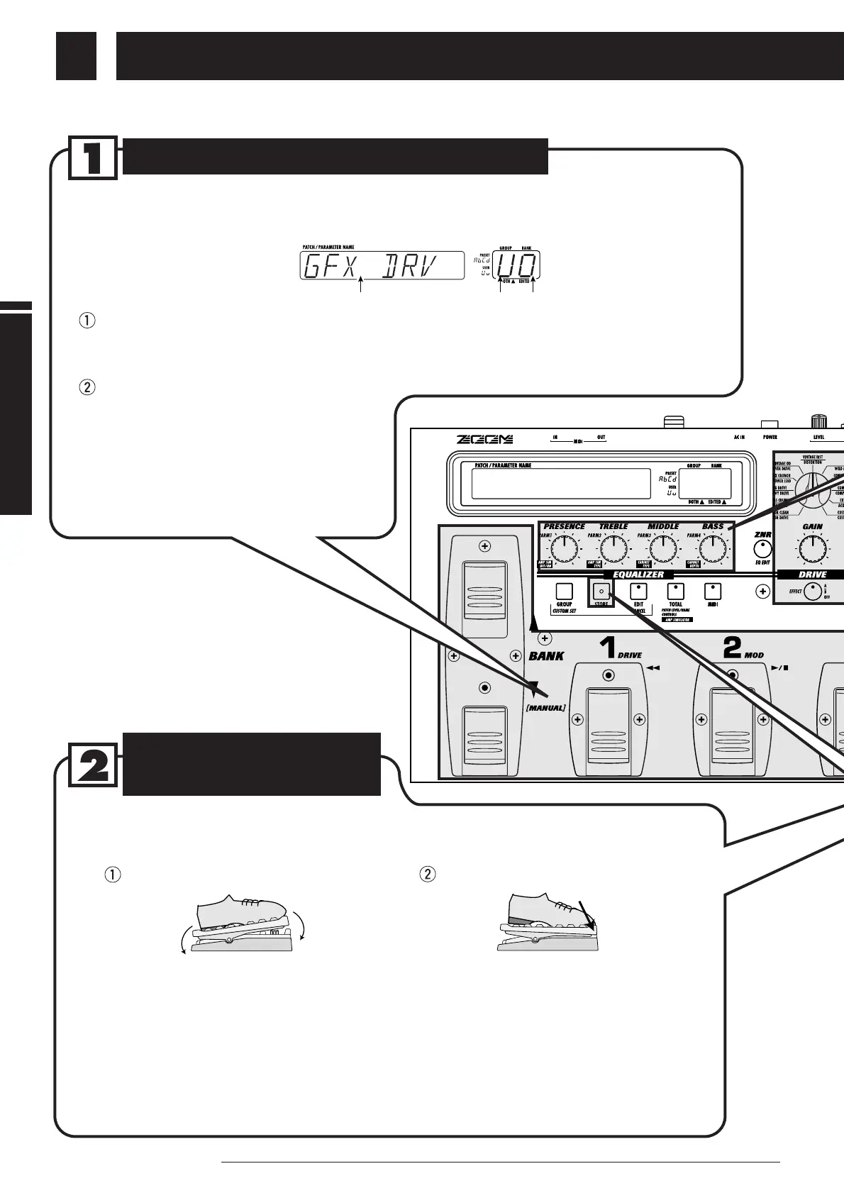 To switch the patch within the same bank, press one of the foot switches 1 - 4