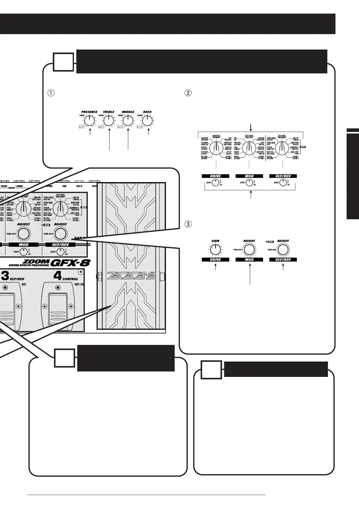 The steps listed below will result in a change of the patch sound quality and effect intensity.