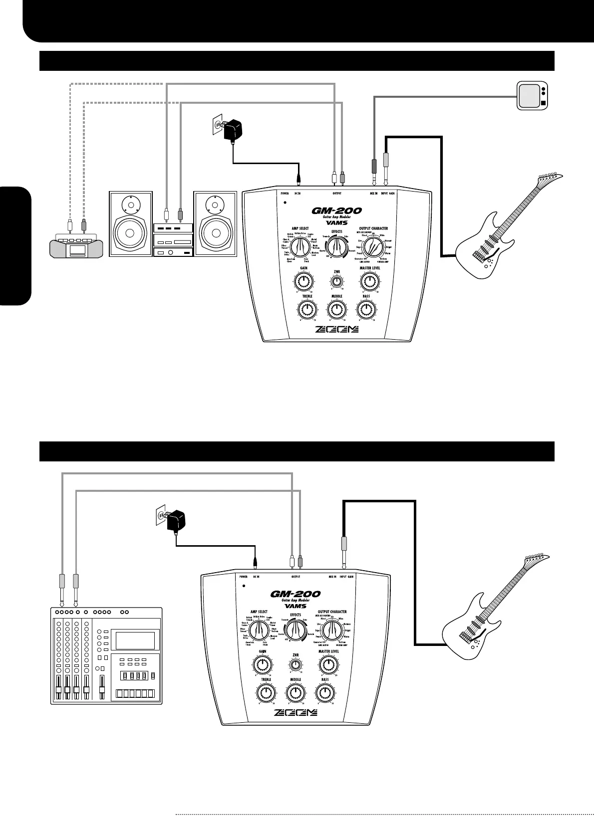 player or similar. Use two audio cables with RCA type plugs to connect the OUTPUT L/R jacks of the GM-200 to