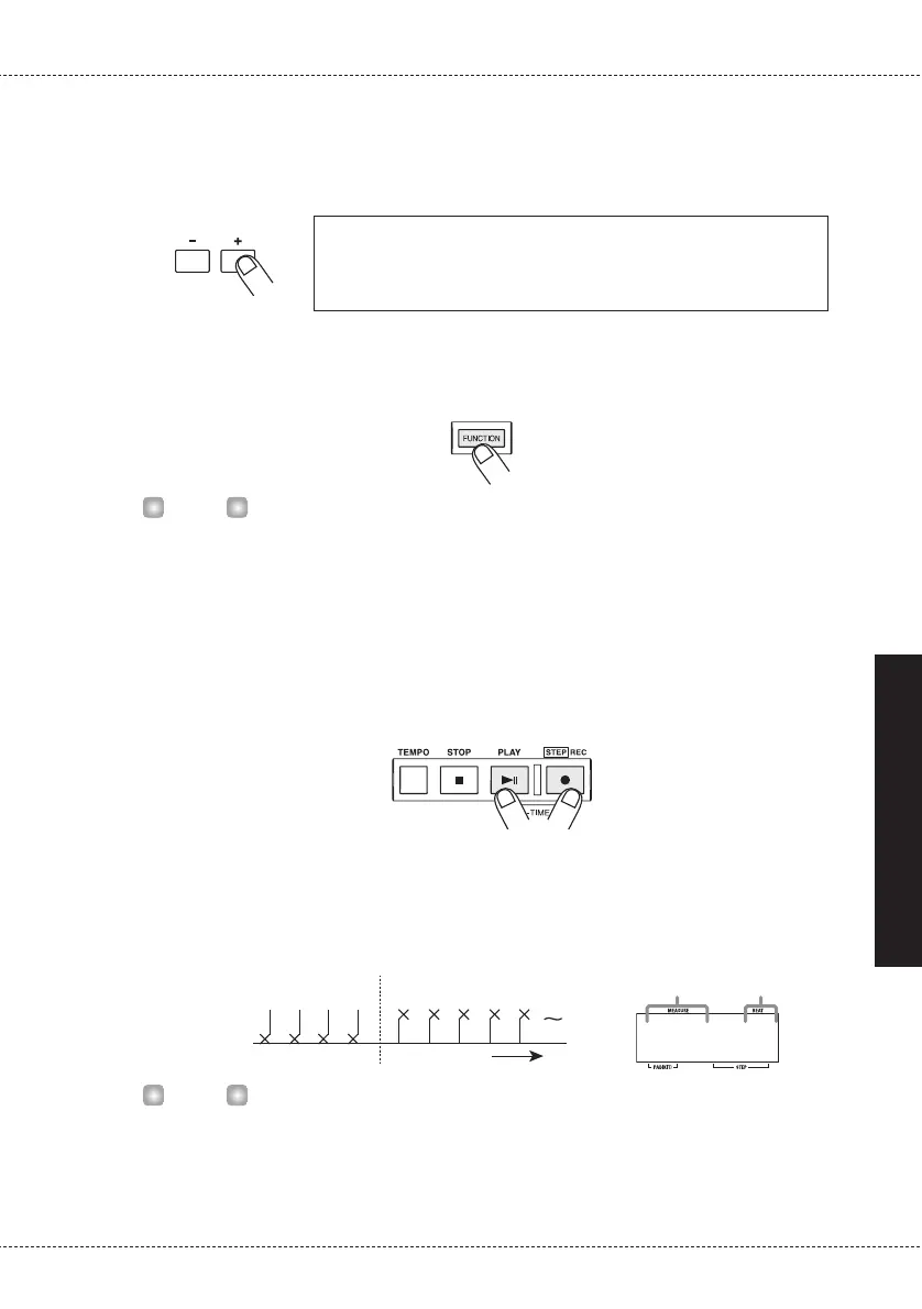 Use the [VALUE +/-] keys to set the quantize value (shortest note to be recorded).