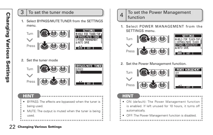 Select BYPASS/MUTE TUNER from the SETTINGS