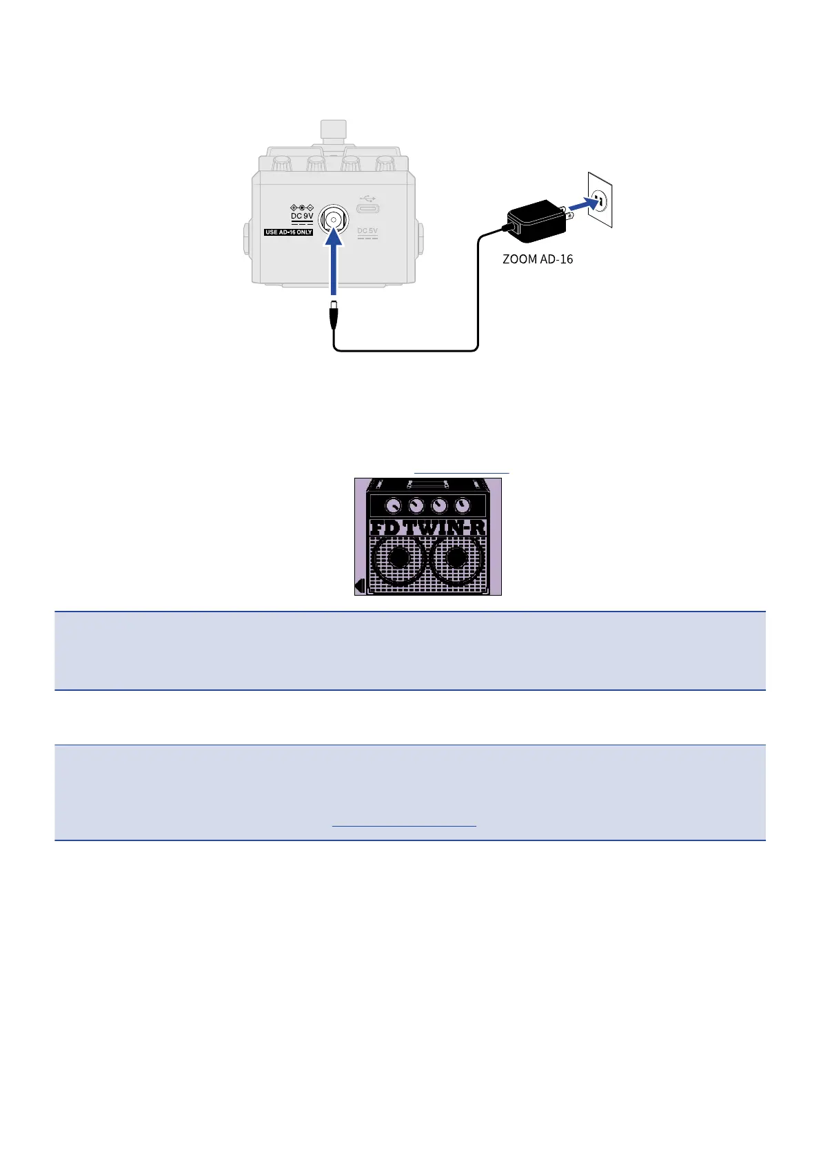 Use a ZOOM AD-16 AC adapter, which is specified for this unit.