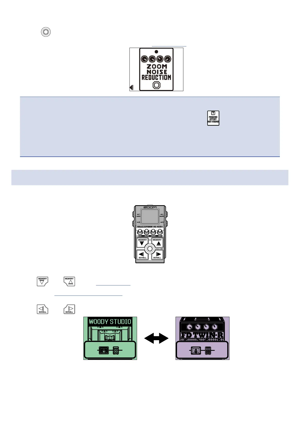 • If an effect has been deleted using the Handy Guitar Lab for MS-80IR+ app, will appear and it will