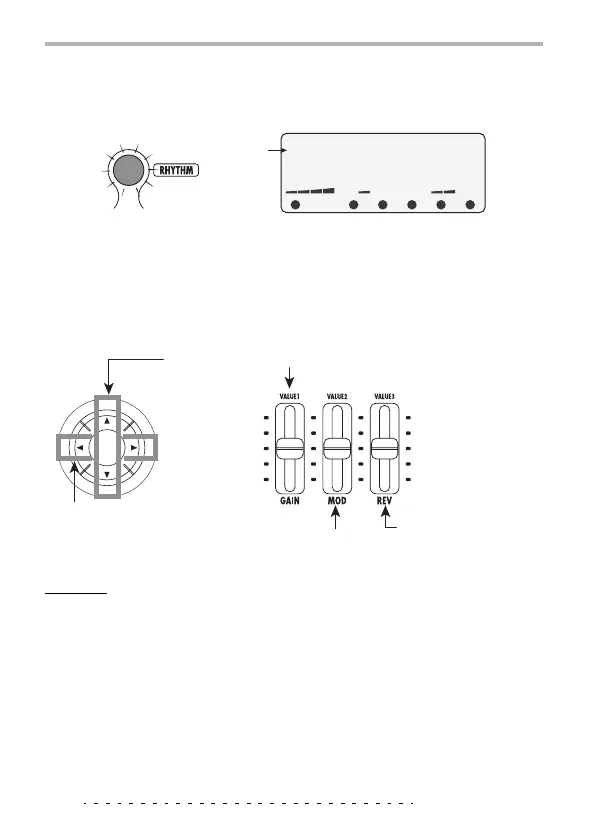 currently selected patch. The [RHYTHM] key LED flashes in sync with the