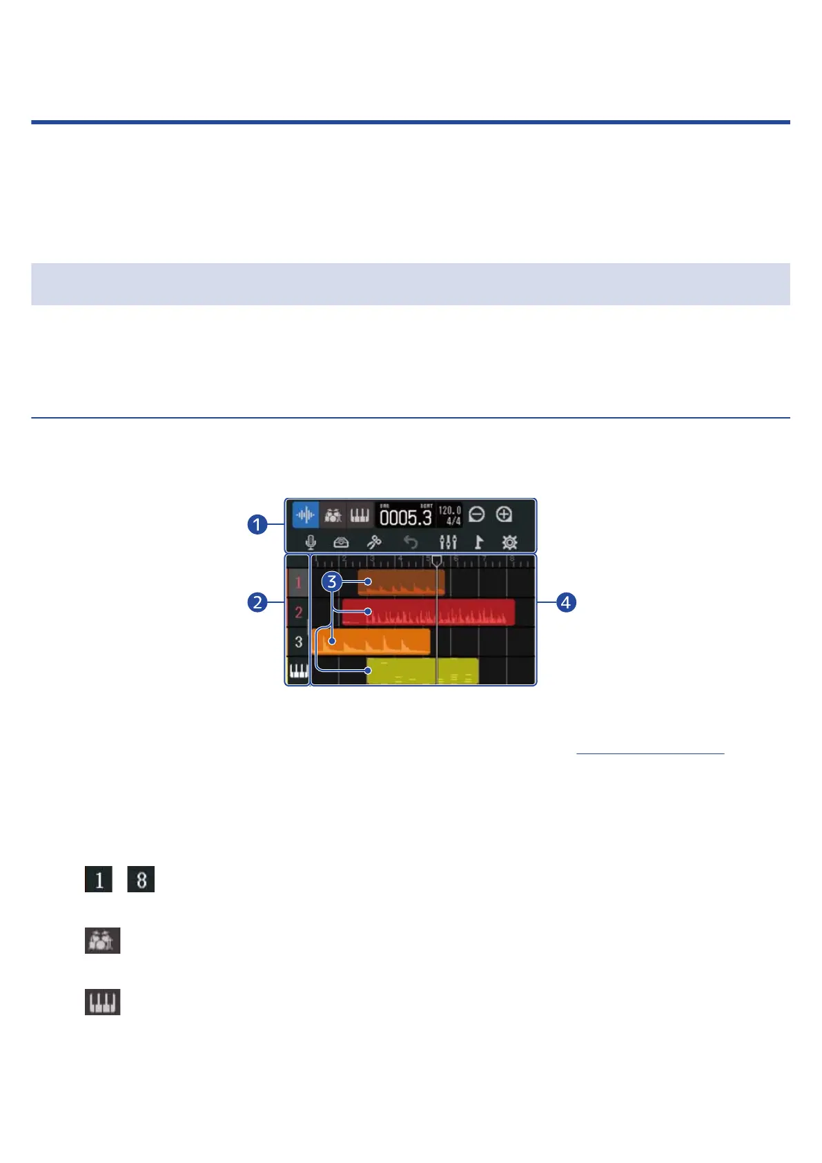 These show track numbers and types. Tap this to select a track, highlighting it. Tracks armed for