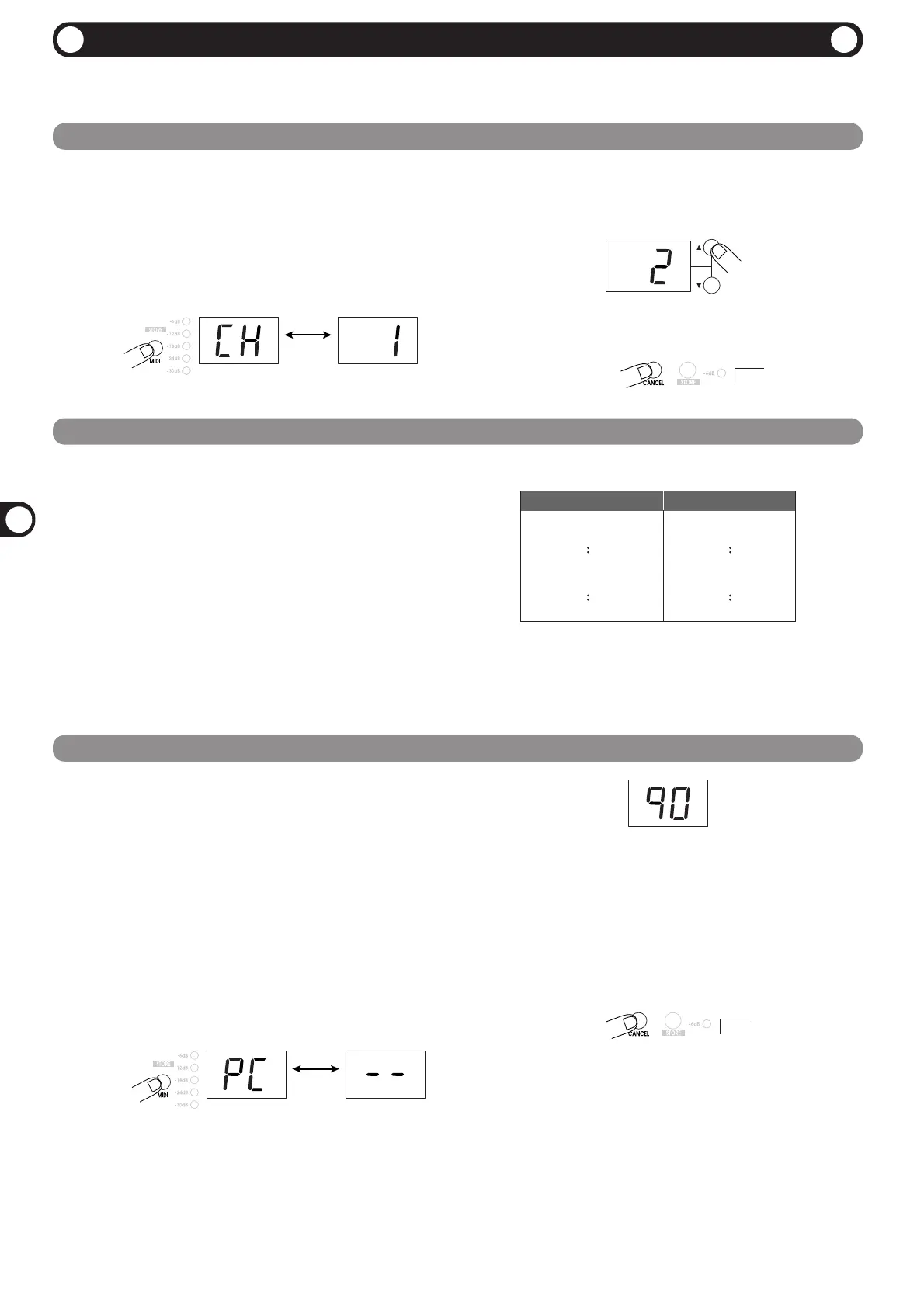 ・ 100〜127のプログラムチェンジ番号は、ディスプレイ上