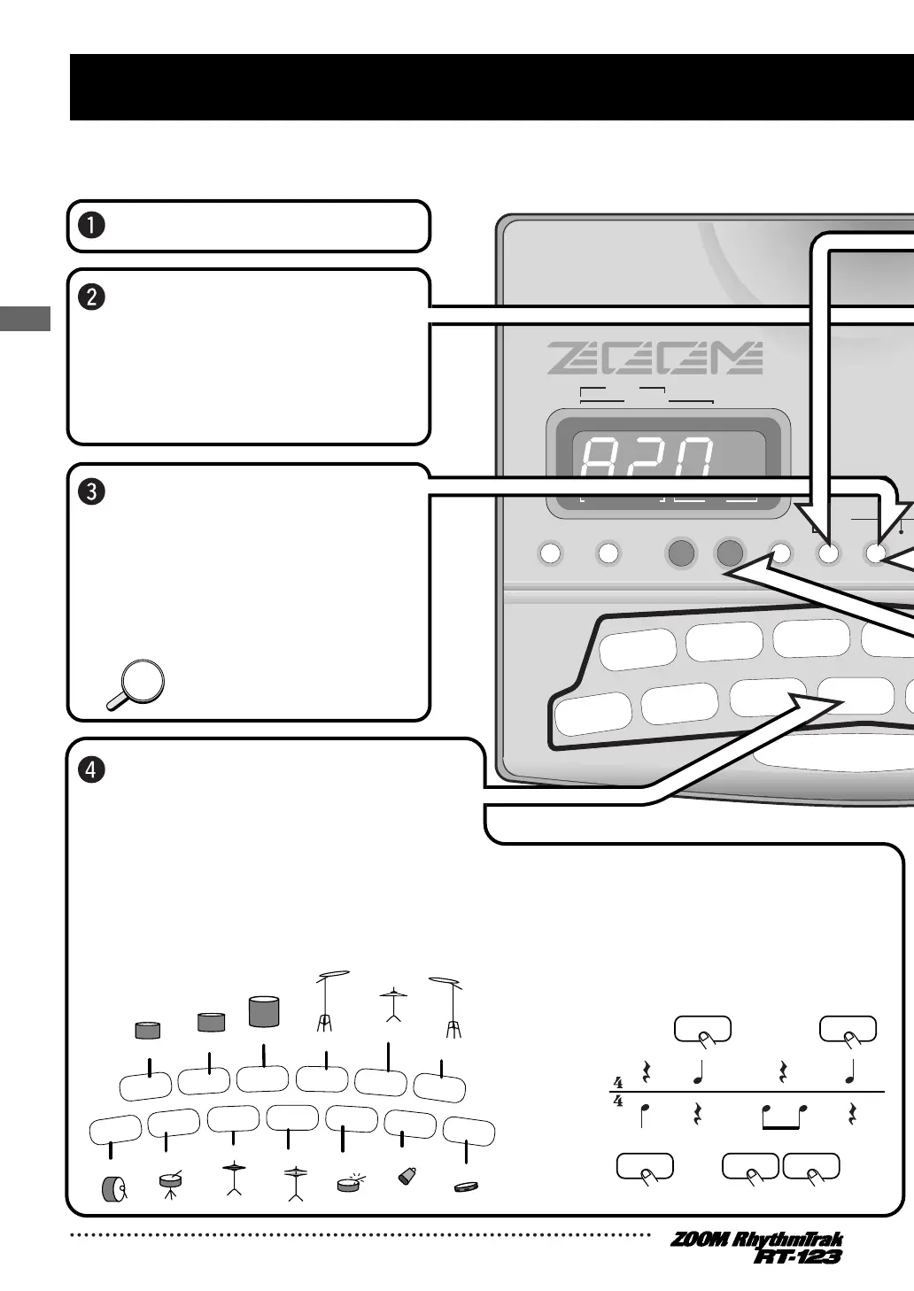 Bekijk gratis de handleiding van Zoom RhythmTrak 123, stel vragen en lees de antwoorden op veelvoorkomende problemen, of gebruik onze assistent om sneller informatie in de handleiding te vinden of uitleg te krijgen over specifieke functies.