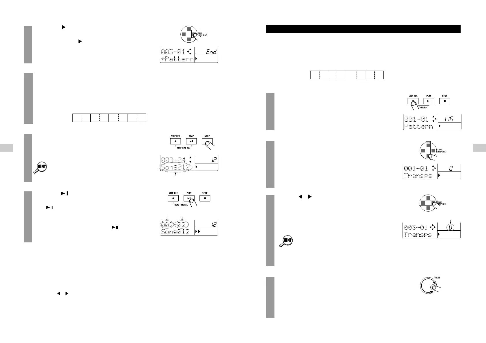 During step input, you can not only select a pattern number but also add various other information