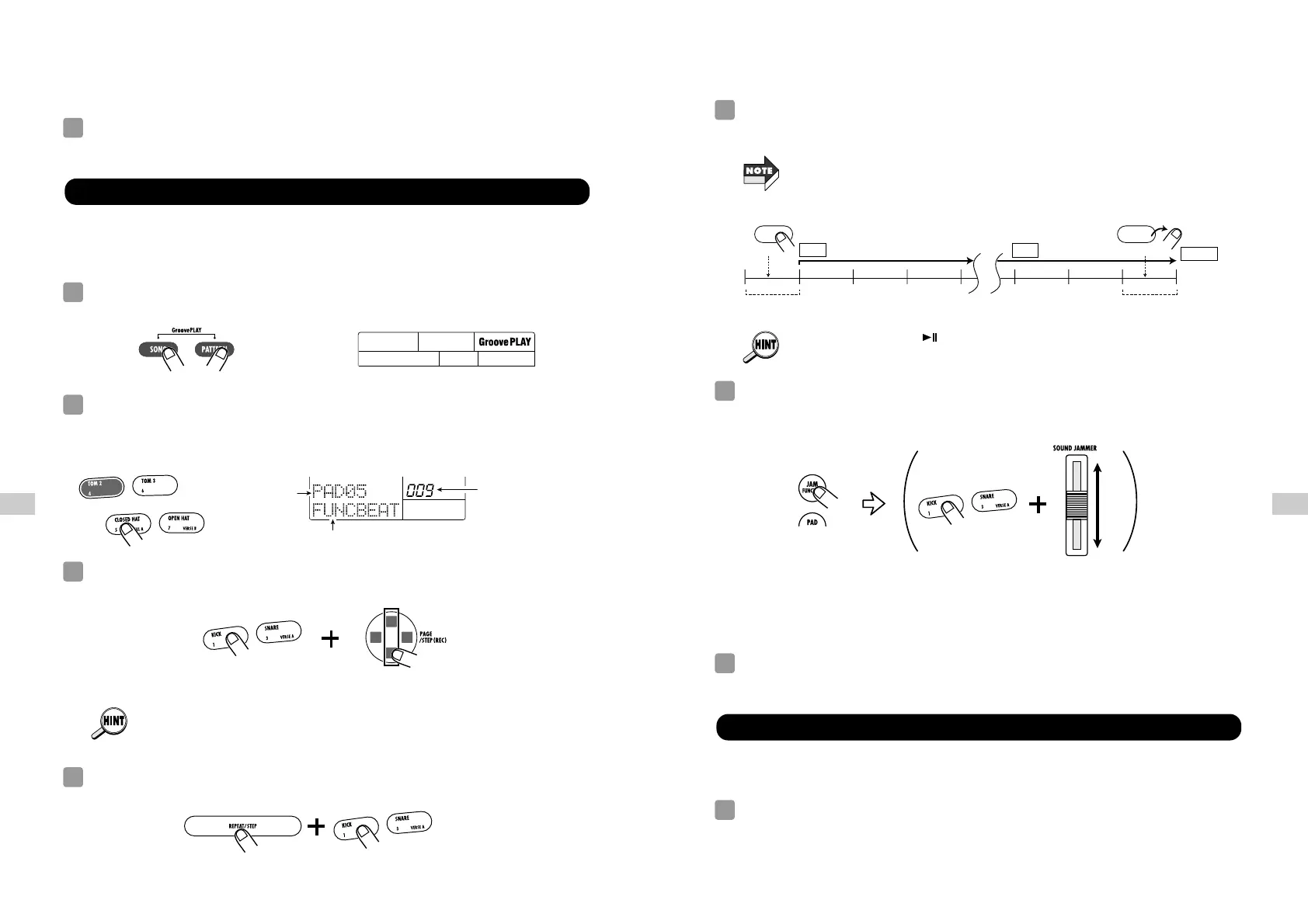 To continuously play the pattern after releasing the pad, hold down the [REPEAT]