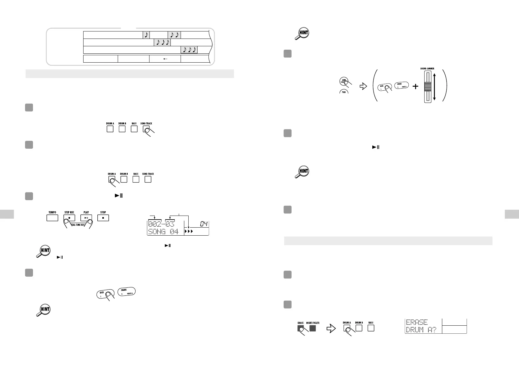 • If you hold down the [ERASE] key and press the [DRUM A]/[DRUM B]/[BASS] key