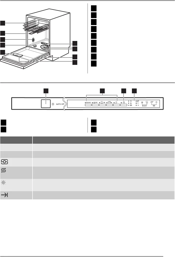 Voyant du réservoir de liquide de rinçage. Ce voyant est toujours éteint pendant le dérou-