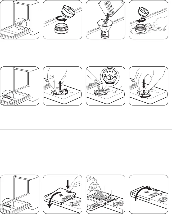 Prije prve uporabe stavite jednu litru vode u spremnik za sol.