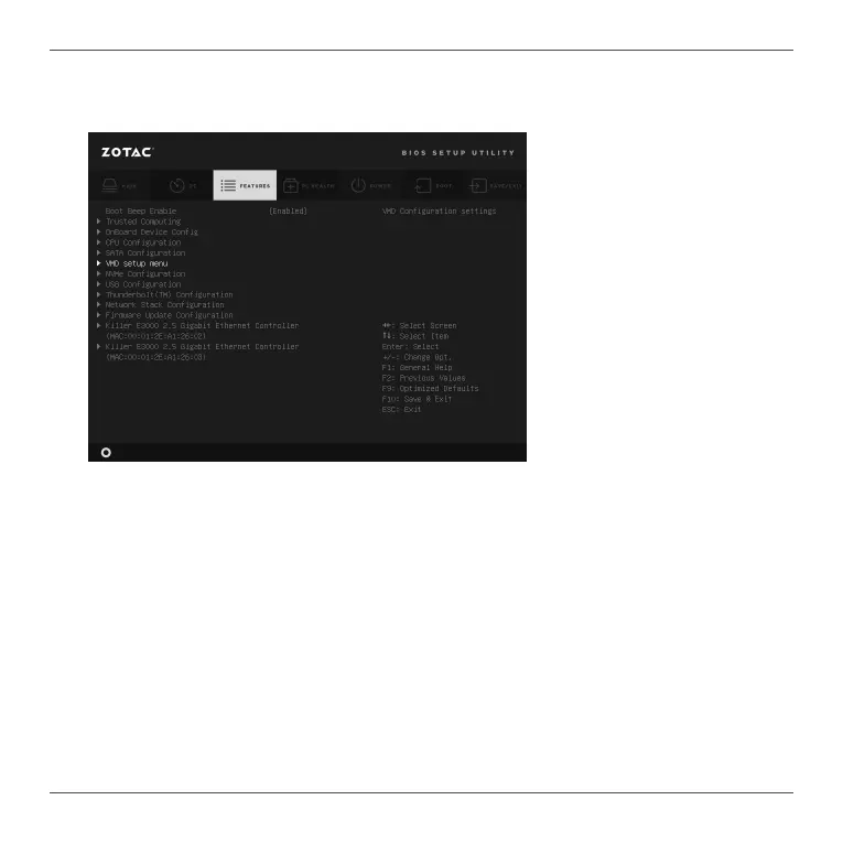 2. Use the arrow key to select FEATURES menu, and select the item VMD setup menu.