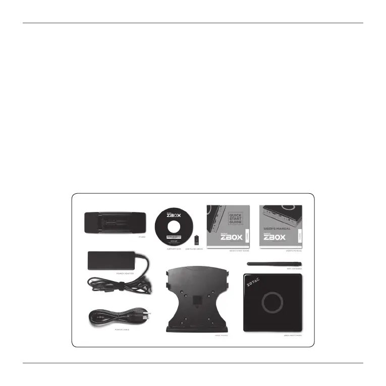 contents of your new ZOTAC ZBOX. If any of the below items is damaged or missed, contact your